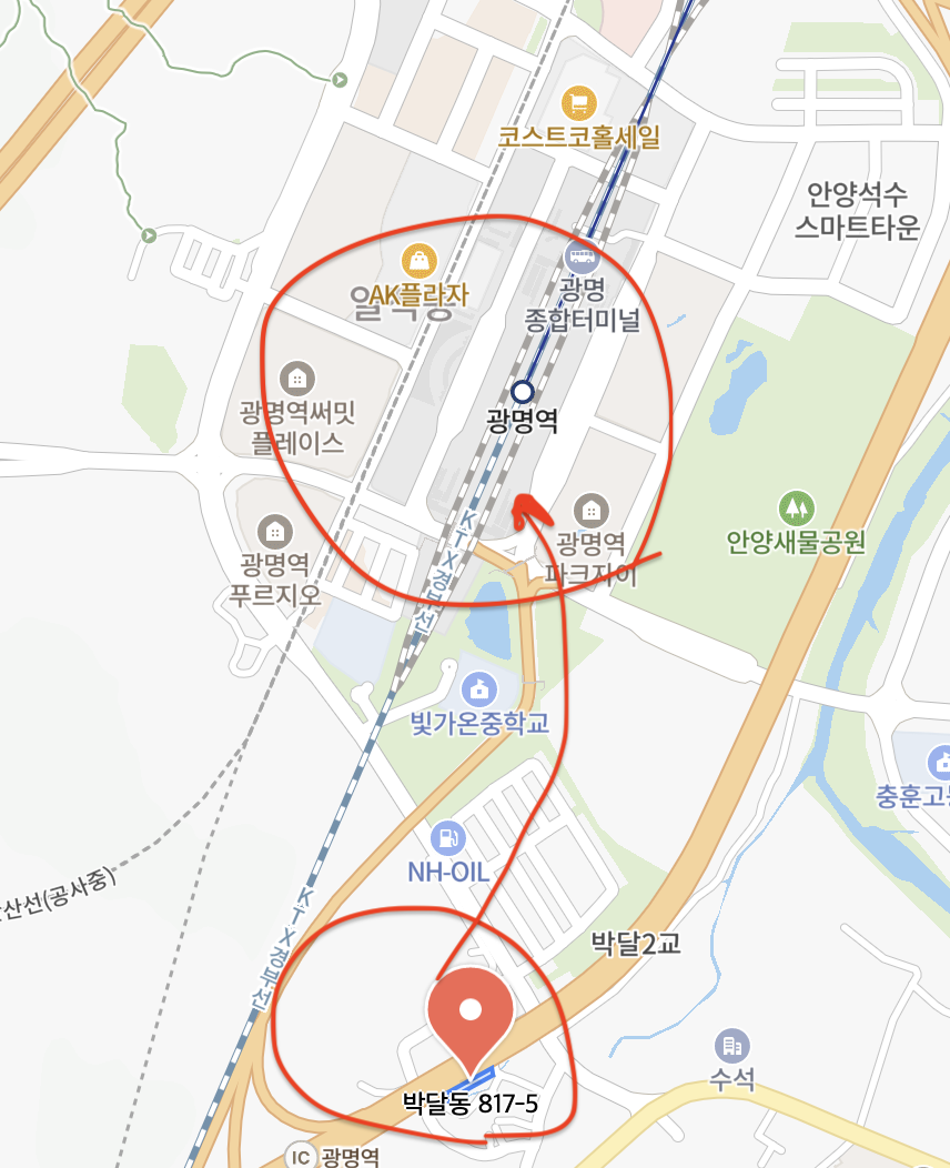 거리가 조금 있어 주차 후 대중교통을 이용하여 광명역으로 이동을 해야하지만, 무료라는 최대의 장점이 있습니다.