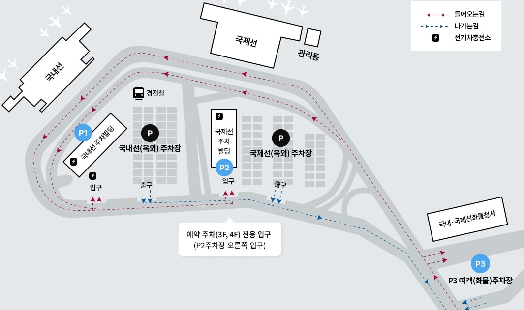 • 국내선 주차장이 더 넓고 편리하지만, 국제선 주차장이 비교적 한산한 편입니다.