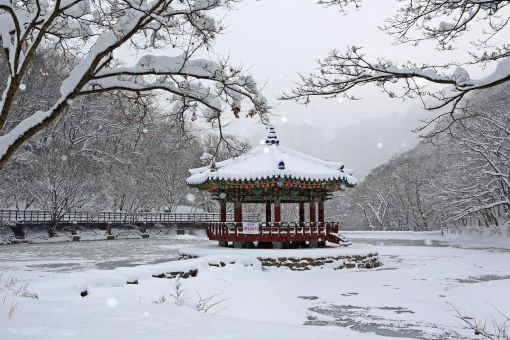 • 백미: 붉은 기둥의 내장사 위에 쌓인 하얀 눈, 그리고 얼어붙은 호수 위 우화정의 자태는 가을과는 전혀 다른 정적인 아름다움을 선사합니다.
