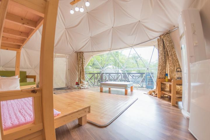- 설명: 텐트를 설치할 수 있는 목재 데크로 이루어진 야영 공간입니다.