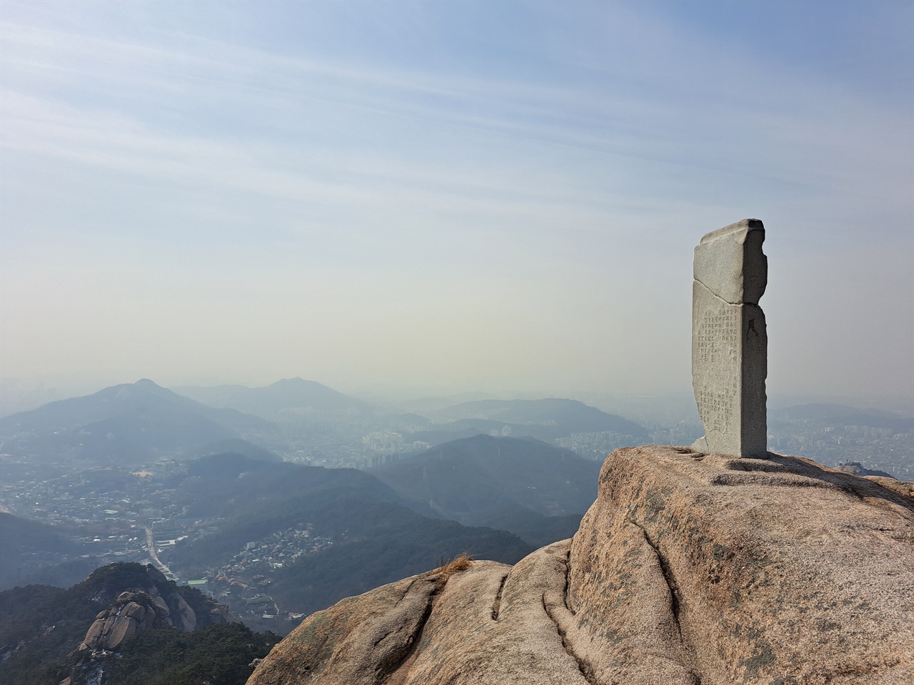 - 진흥왕 순수비 지점: 코뿔소 바위에서 정상으로 이어지는 구간은 매우 가파른 암벽입니다. 별도의 안전장치가 없으므로 초보자는 절대 무리해서 올라가면 안 됩니다. 정상에 서면 좁은 바위 위에 세워진 비석과 함께 북한산 전체가 내 발아래 있는 듯한 전율을 느낄 수 있습니다.