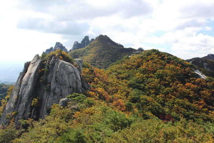 • 날카로운 바위가 솟아 있는 능선 구간입니다. 우회로가 잘 되어 있지만, 바위를 직접 탈 경우 접지력이 좋은 등산화가 필수입니다.