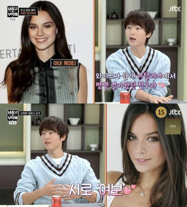 송중기는 방송 중 케이티와의 애칭이 '여보'라고 밝히며 사랑꾼 면모를 여실히 드러냈습니다.