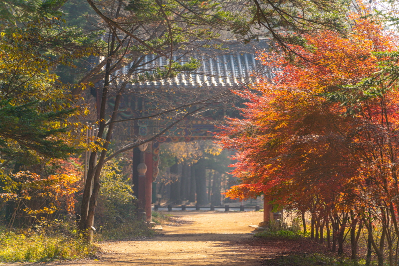 • 특징: 과거 스님들이 걷던 수행의 길입니다. 계곡을 따라 완만하게 이어지며, 가을 단풍철에는 전국 최고의 경관을 자랑합니다. 등산보다는 '긴 산책'을 원하시는 분들께 추천합니다.