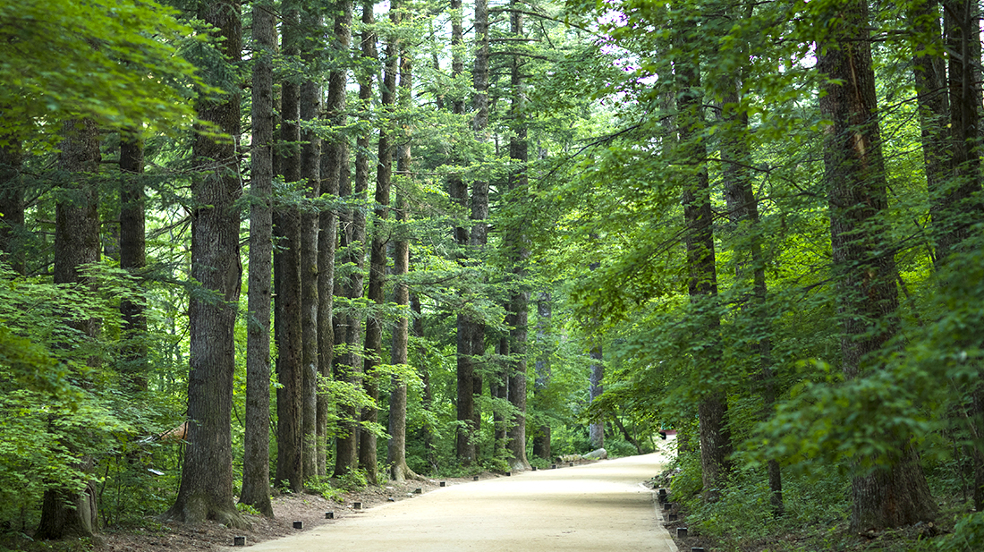 - 평탄한 흙길로 조성되어 있어 남녀노소 누구나 걷기 좋으며, 80년 이상의 수령을 자랑하는 전나무 1,700여 그루가 뿜어내는 향기는 머리를 맑게 해줍니다.
