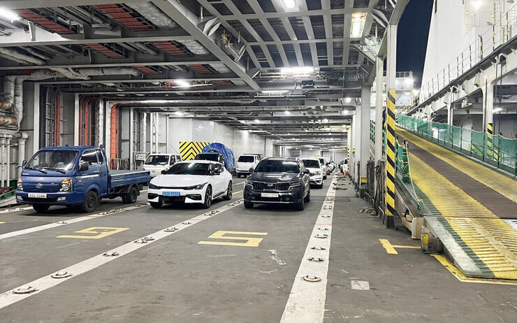 - 차량 선적 가능: 승용차부터 대형 화물차량(최대 25톤)까지 선적 가능