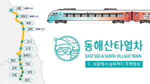 동해산타열차는 강릉에서 출발해 정동진, 묵호, 동해, 신기, 도계, 철암을 거쳐 분천 산타마을에 도착하는 관광열차입니다.